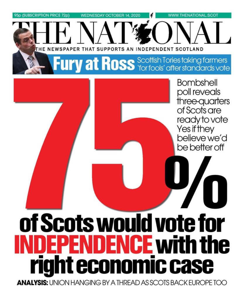 And The National (spit!) had an entire front page that shouted, ‘75% of Scots are ready to vote yes if they believe we’d be better off.’